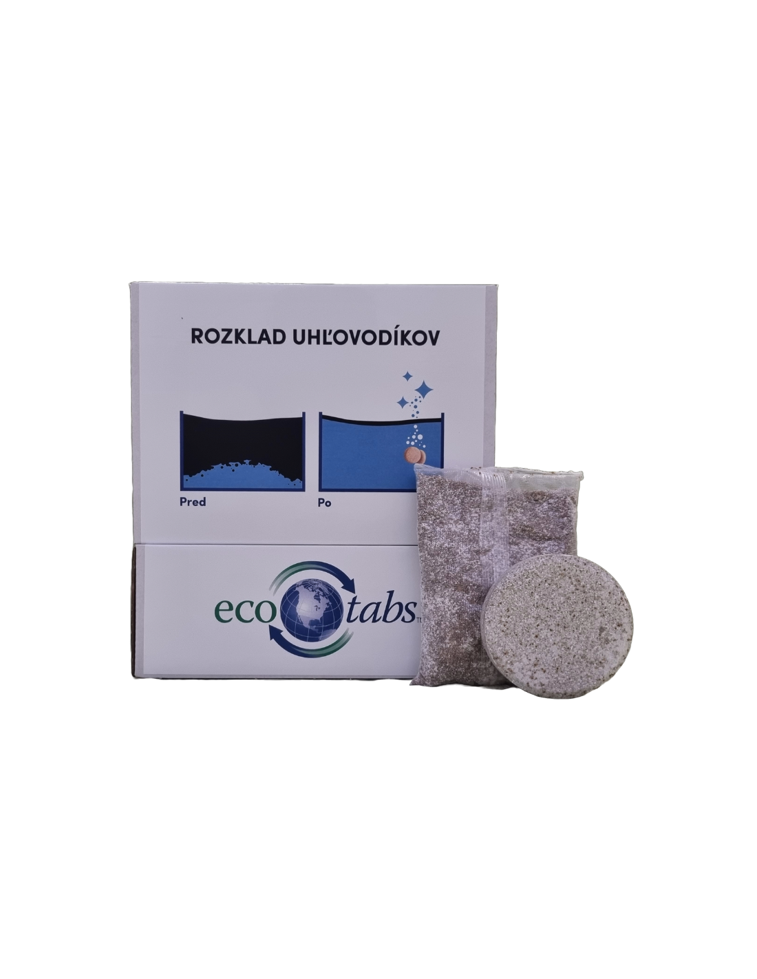 ecotabsTM ECO-H maintenance pack – udržovací balení pro odlučovač ropných látek je biopreparát – biologický přípravek, který ekologickým, přírodním způsobem likviduje uhlovodíky (ropné látky) v odlučovači ropných látek a průmyslových čistírnách odpadních vod. ECO-H je koncentrovaný širokospektrální odbourávač uhlovodíků obsahující směs primárních bakteriálních kmenů ecotabsTM, doplněných o další nepatogenní kmeny speciálně vybraných bakterií a hub, které jsou známé svou tendencí degradovat různé uhlovodíky. ECO-H rychle degraduje hlavní složky nafty, konkrétně benzen, toluen, xylen, naftalen, metylnaftalen, anthracen a polymery C10 až C17. Produkt je první volbou pro aplikace pro sanaci látek jako je černouhelný dehet, ropa a směsi lehkých a těžkých ropných frakcí. Naše patentovaná receptura také úspěšně degraduje alkoholy, ketony a ftaláty a také zmírňuje škodlivé PAU (Polycyklický aromatický uhlovodík). Produkt také degraduje ftaláty, ketony, různá rozpouštědla, sloučeniny obsahující síru, alkoholy, chlorované uhlovodíky, aminy a další složité organické sloučeniny nacházející se v rafinériích a odpadních vodách chemických závodů, které jsou toxické pro přirozeně se vyskytující bakterie. Bakteriální kultury mohou tolerovat koncentrace ropy, které jsou pro mnohé přirozeně se vyskytující bakterie inhibiční. Může tolerovat až 20 ppm koncentrace těžkých kovů bez potřeby testování na zkušebním zařízení. Robustní pracovní rozsah ECO-H je v rozmezí 0-60 °C (25-35 °C je optimum). Vyšší nebo nižší teploty sníží účinnost. Pokud je průměrná teplota okolí nad nebo pod účinným rozsahem, zvyšte dávku o 25 %. Produkt má optimální rozmezí pH 6,0 až 9,0, ale při nižším nebo vyšším pH bude rozkládat uhlovodíky pomaleji.